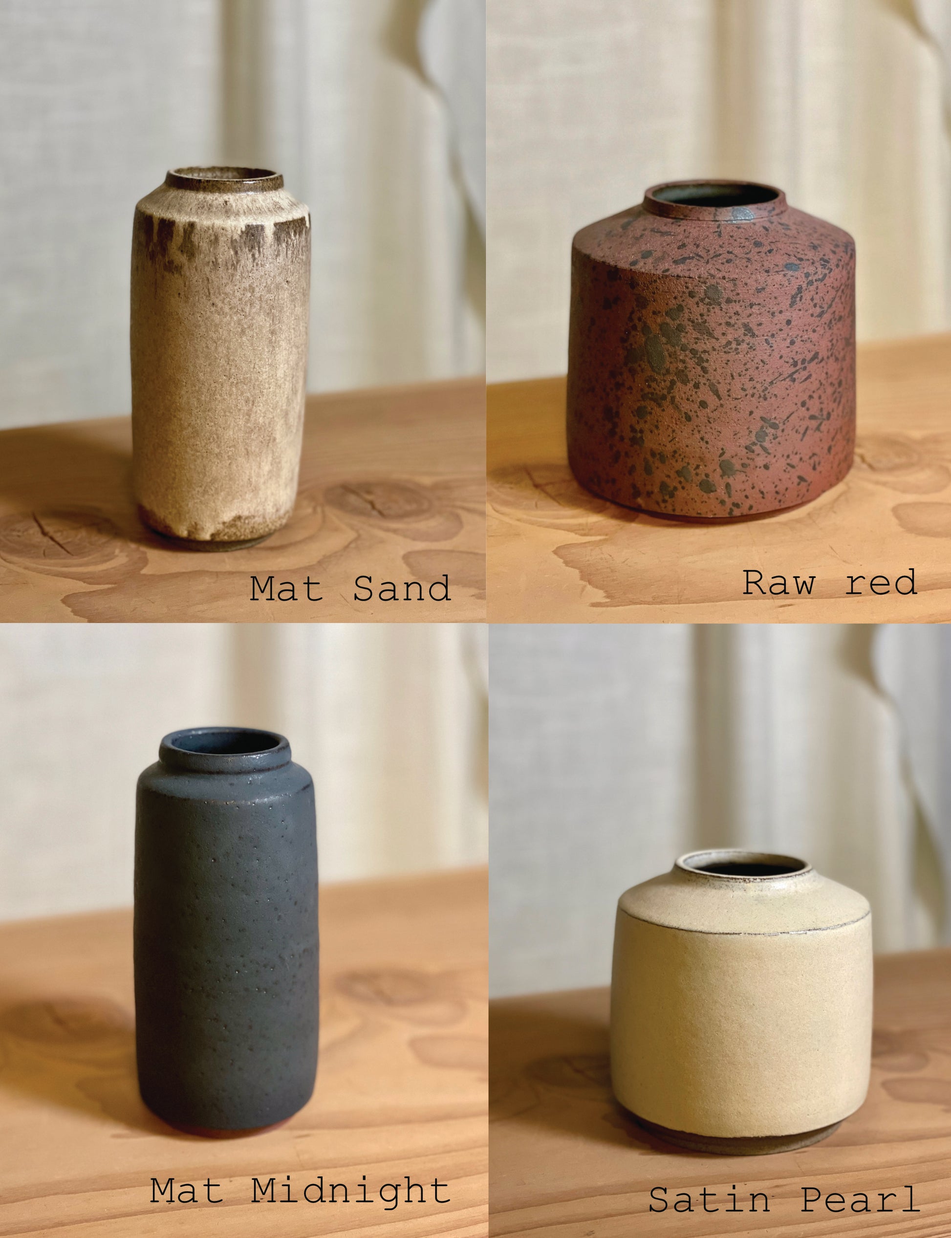 Handmade in stoneware clay on a turntable, trimmed, dried, fired the first time, then glazed in my homemade glazes and fired again.