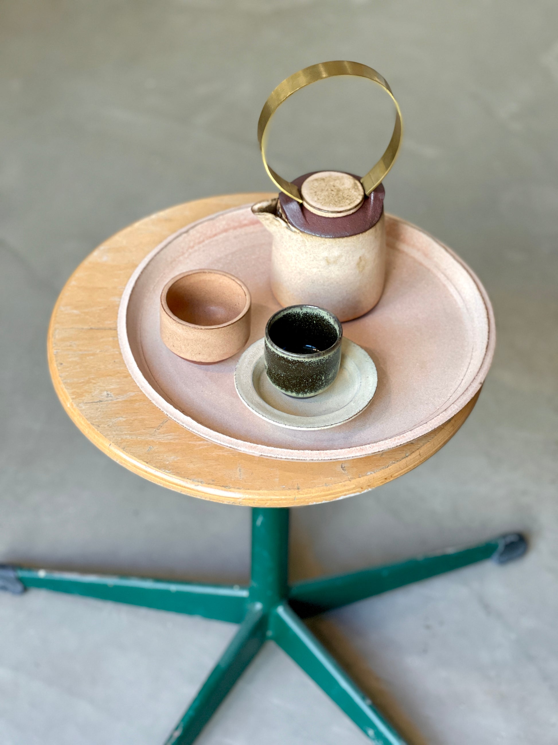Tekander som er håndlavet i stentøjsler på drejeskive, trimmet, tørret, brændt første gang, derefter glaseret i en af mine hjemmelavede glasurer og brændt igen.